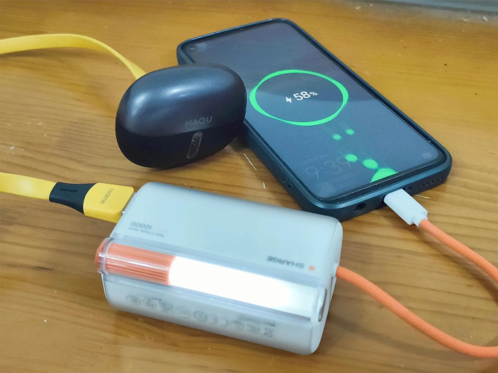 10000mAh 的容量也超够用,十足毋庸天天找插座续命。况且它支柱双向快充,用充电器给它补电也很快,约略 1.5 小时就能充满,睡前插着,第二天又是满电状况,安全感平直拉满。