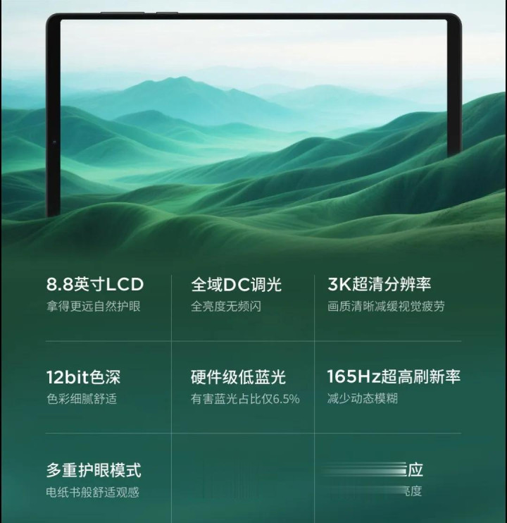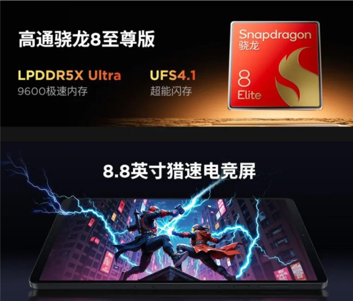 外围设立的话,对称式双扬声器、GPS+北斗多模导航、WIFI7、TF卡拓展、X轴线性马达等,王人是高端小平板的标配。