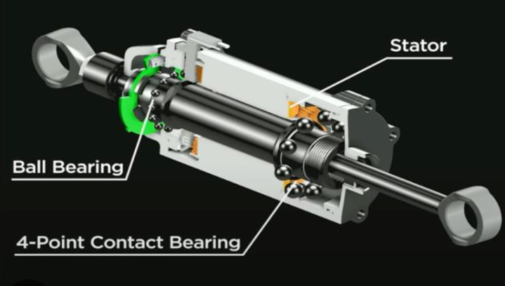特斯拉线性实行器中的无框电机、深沟球轴承和四点战争球轴承