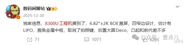屏幕给与6.82英寸京东方2K直屏,LTPO 1-120Hz自顺应刷新率+2160Hz PWM调光,四窄边诡计。