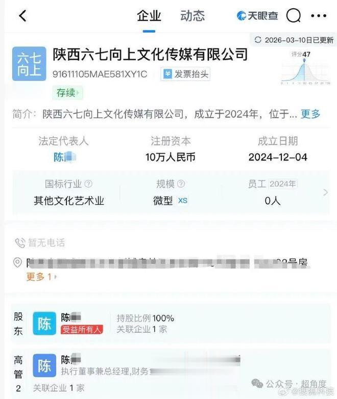天眼查泄漏,二东谈主关联公司建树于2024年12月,注册成本10万,法定代表东谈主是陈某。