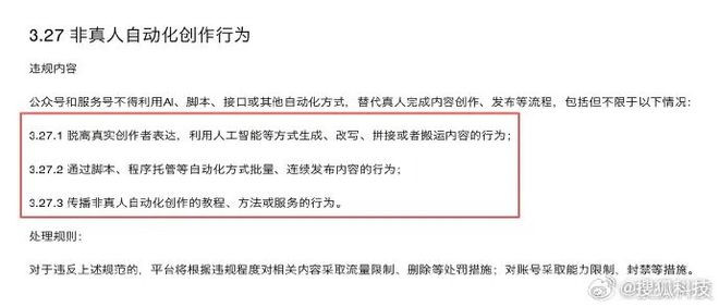 值得刺眼的是,微信公众号近日新增“非真东谈主自动化创作活动”轨则,明确轨则:公众号和劳动号不得诓骗AI、剧本、接口或其他自动化面容,替代真东谈主完成本色创作、发布等进程。