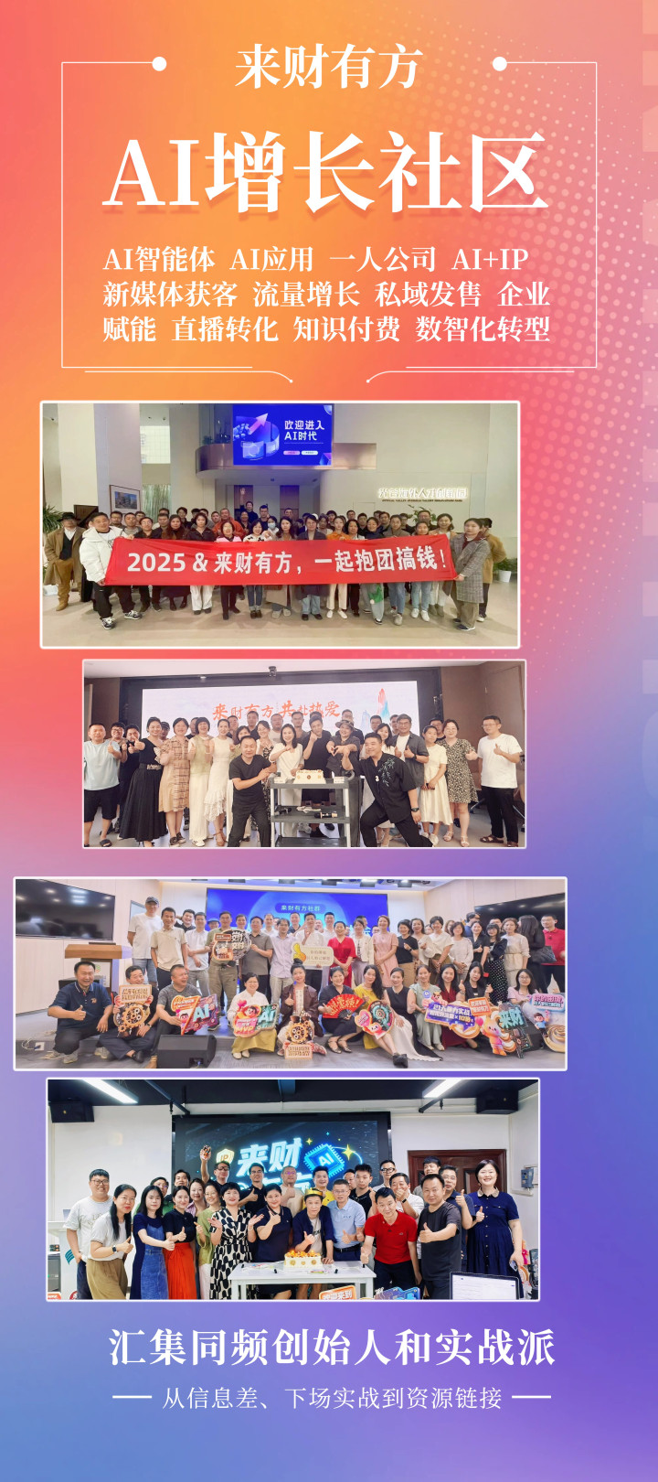 来财有方聚焦于行使AI和新媒体两大杠杆,通过年费会员制,匡助企业家、创举东谈主及一东谈主公司实现业务增长与变现的贸易赋能社区,为会员提供从融会、实战到资源伙同的全主义支合手。
