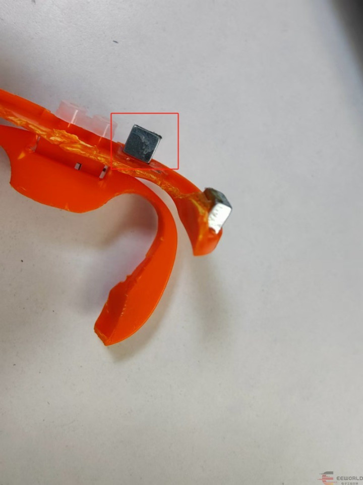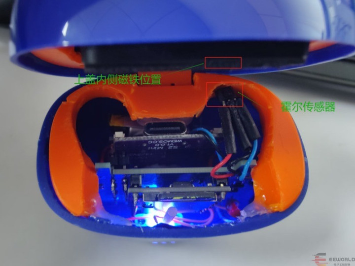 在上盖里面装配一块磁铁,并革新霍尔传感器的位置,使盖下来的时候磁铁概况瞄准霍尔传感器的位置