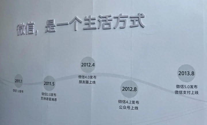 上周,我去广州参加了微信公开课,在现场看到一条很长的时间线,展示了微信从 1.0 上线到当今的所关联键节点。