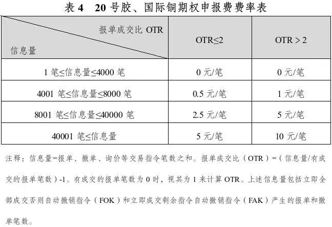 20号胶、海外铜期权对客户信息量收取陈述费,具体如下表所示。