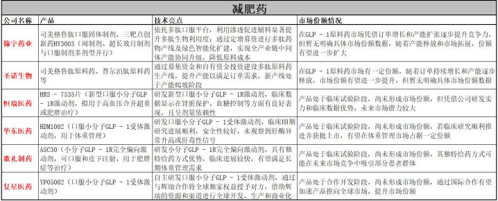 总体而言,大家减肥药阛阓在口服药物兴起的配景下竞争气象发生了变化。国内原料药企业通过积极扩产来满足阛阓需求,革命药企业则通过各异化革命寻求冲破。然而,现在大都国内企业的产品仍处于研发或临床考试阶段,尚未变成明确的阛阓份额。昔日,跟着产品的连接上市和阛阓的进一步拓展,国内企业在大家减肥药阛阓的竞争力有望欺压提高。