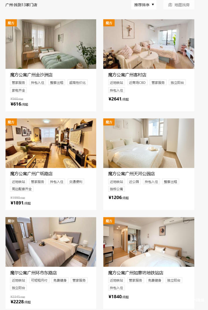 魔方公寓官网自大,在广州区域内共有13家门店仍在运营中。