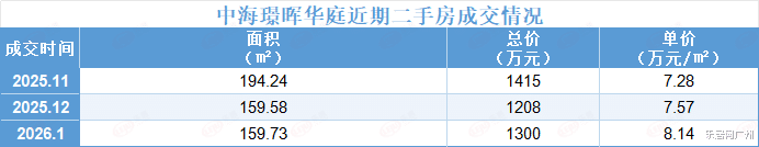 相似的户型,旧年的成交价仅为7.57万元/㎡,而1月则追念至8.14万元/㎡。