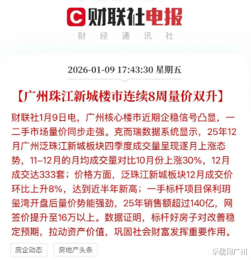 年头,财联社便发布了一则音讯称:珠江新城楼市连结8周量价双升。