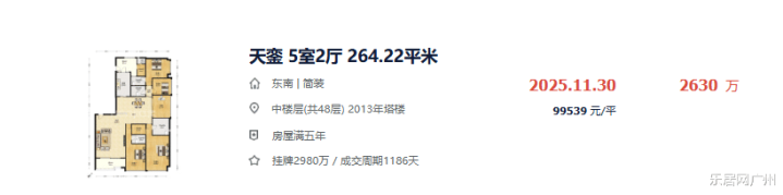 但在2026年1月17日,不异的建面约264㎡户型,不异的东南向,其成交均价则追念至10.42万元/㎡,总价2750万元。
