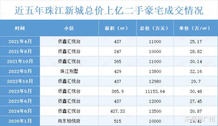 天然珠江新城豪宅多,但上亿的成交仍是历历。