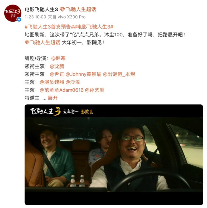 就在2026年春节档倒计时不及一个月的1月23日,《奔驰东说念主生3》终于官宣定档并放出首支预报,全声威曝光的一霎笔直燃烧全网期待。