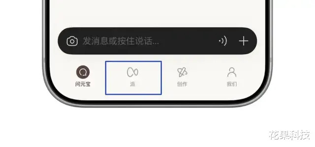 测试领域内的用户将元宝更新到最新的 2.55.0 版块,在底部 Tab 栏就会看到「派」选项。