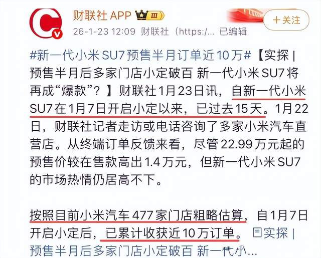寰宇望望,从小米汽车公布SU7新一代开动预订以来,小米官方有莫得发布数据,一个字王人莫得公布吧。