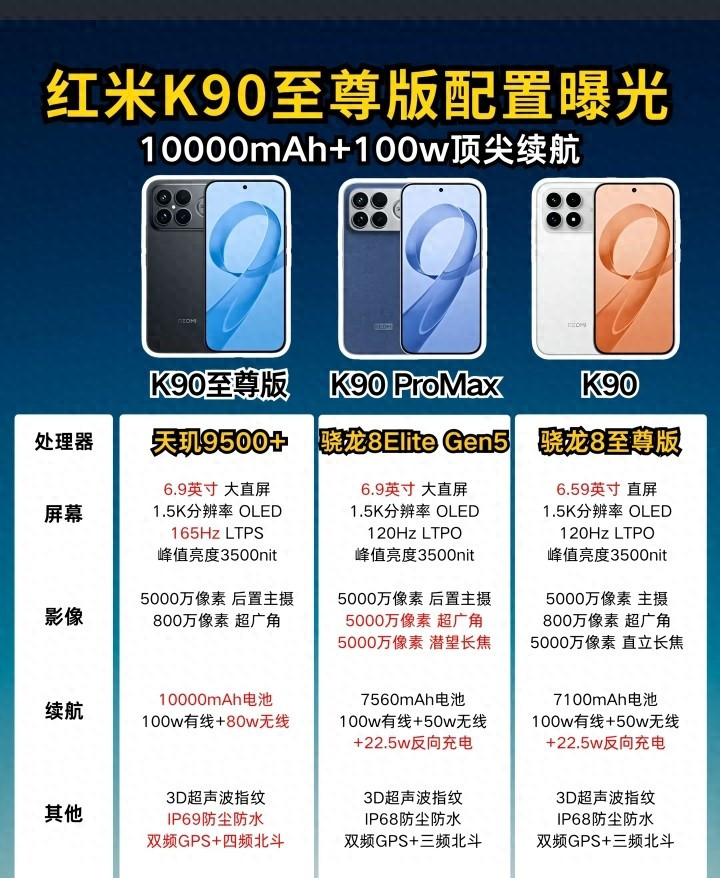7:要而言之,红米K90至尊版是一款集极致性能、超长续航、顶级屏幕、实用影像与全面防护于孑然的万能型旗舰手机,它不仅在硬件参数上作念到了极致堆料,更在用户体验的细节上进行了深度打磨,从天玑9500+的强悍性能到10000mA金沙江大电板的续航古迹,从1.5K 165Hz LTPO屏幕的视觉盛宴到IP69防尘防水的成全保护,每一个细节都彰显了红米品牌对“极致性价比”和“用户需求”的真切和解与执着追求,关于那些追求高性能、长续航以及全面体验的手机用户而言,红米K90至尊版无疑是一个极具诱导力的采取,它将以苍劲的产物力和超高的性价比,在2026年的智高东谈主机市辘集占据紧要的地位,成为繁密耗尽者换机时的首选方针。