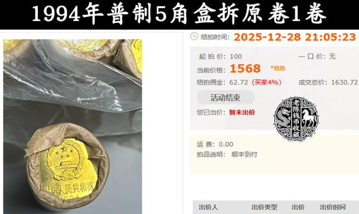 比如说一卷94年的梅花5角原卷,在拍卖会上就曾经拍到过1630.72元。