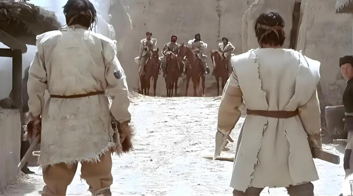 沙里飞没来,一刀仙一伙却一个不少的来了。濒临东谈主多势众的匪帮,小孩哥没勇气拔刀。瘸子丈东谈主挺身而出,拔刀走去,瞬息之后死在一刀仙刀下;随后仗义的铁匠站了出来,一番热血欢畅,随后死在一刀仙刀下;醉醺醺的马倌颤巍巍地走来,也死在一刀仙刀下。