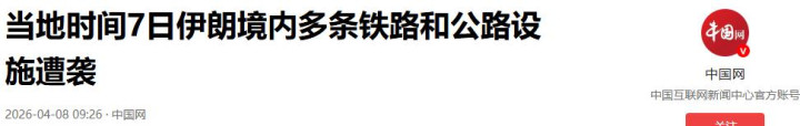 当地时间7日伊朗境内多条铁路和公路才略遭袭-2026-04-08 09:26·中国网