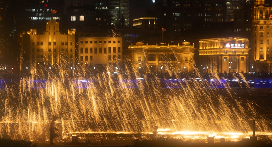 来自重庆铜梁的千年非遗“打铁花”首次亮相上海城区