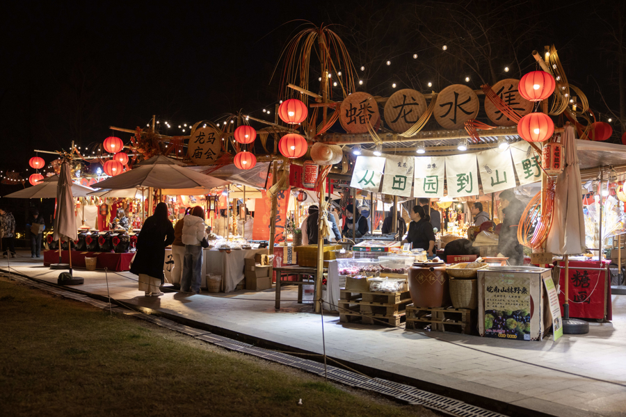蟠龙新天地的蟠龙水集中,大红灯笼高挂街巷,年味随风漫开