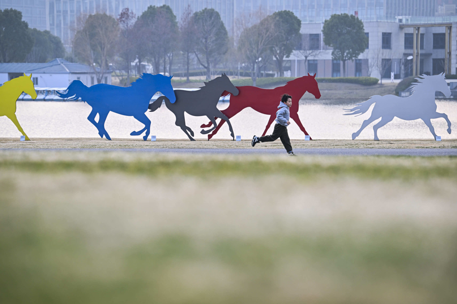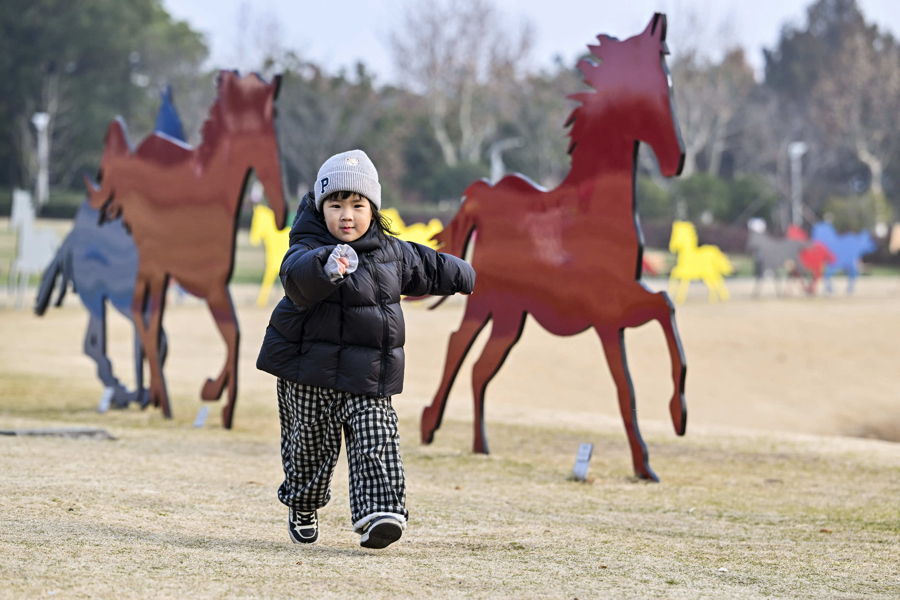 闵行文化公园内的“万马奔腾”雕塑成为周边市民日常休闲活动打卡地