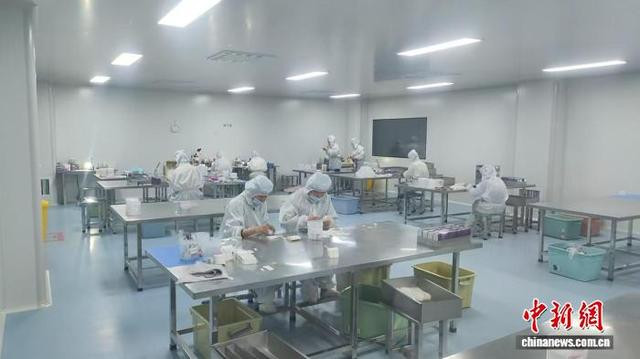 在菏泽市单县一家医疗用品公司,工东谈主们身着无菌工装专注操作。单县县委宣传部供图