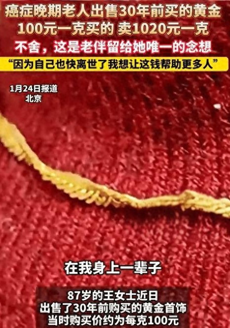 87岁的王奶奶,揣着丈夫留住的黄金首饰,走进了回收店。这是三十年前爱东谈主以每克100元买下的念念念,如今金价翻十倍,成了她最格外的“善款”。
