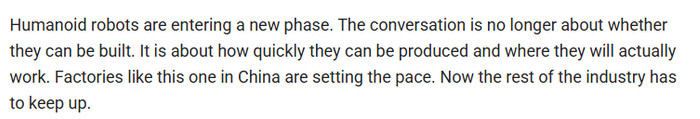 著述终末说,东说念主形机器东说念主正在进入一个新阶段:参谋的重心不再是它们能否被制造出来,而是能以多快的速率参加坐蓐,以及究竟将在哪些岗亭上参加本色欺骗。像中国这么的工场正在引颈潮水,行业的其他参与者咫尺必须跟上。