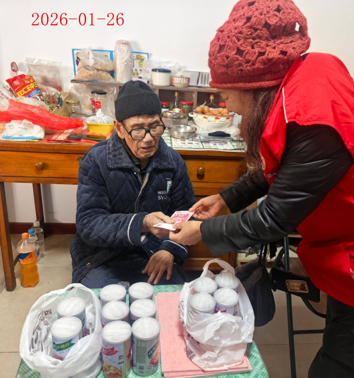 (陕西公益传媒)2026年1月26日上昼,西安,隆冬里的风尽头透骨。陕西零贰玖公益服务中心“红太阳社区助老助残助困”公益技俩组,西安慈善东城志愿者服务队张志忠、鲁健宁、宋晓丽、孙红旗四名志愿者,驱车赴西安北郊珠江新城香槟社区,与社区文牍高磊、社区干部徐静等沿途,打听了87岁的孤寡老东谈主刘福全,给他送去12罐“娃哈哈”八宝粥和标记长寿百岁的100元慰问金,老东谈主十分情景,拉着志愿者的手不肯意缓慢。