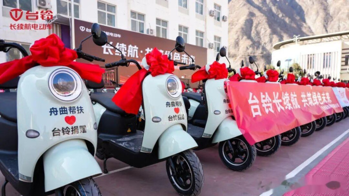 1月23日,台铃在甘肃省舟曲县举办长续航·共筑绿色异日暨电动车捐赠典礼,向当地学校、病院及州里单元捐赠电动自行车,撑握下层就业者培植服务后果,切实助力当地民生改善和乡村振兴。