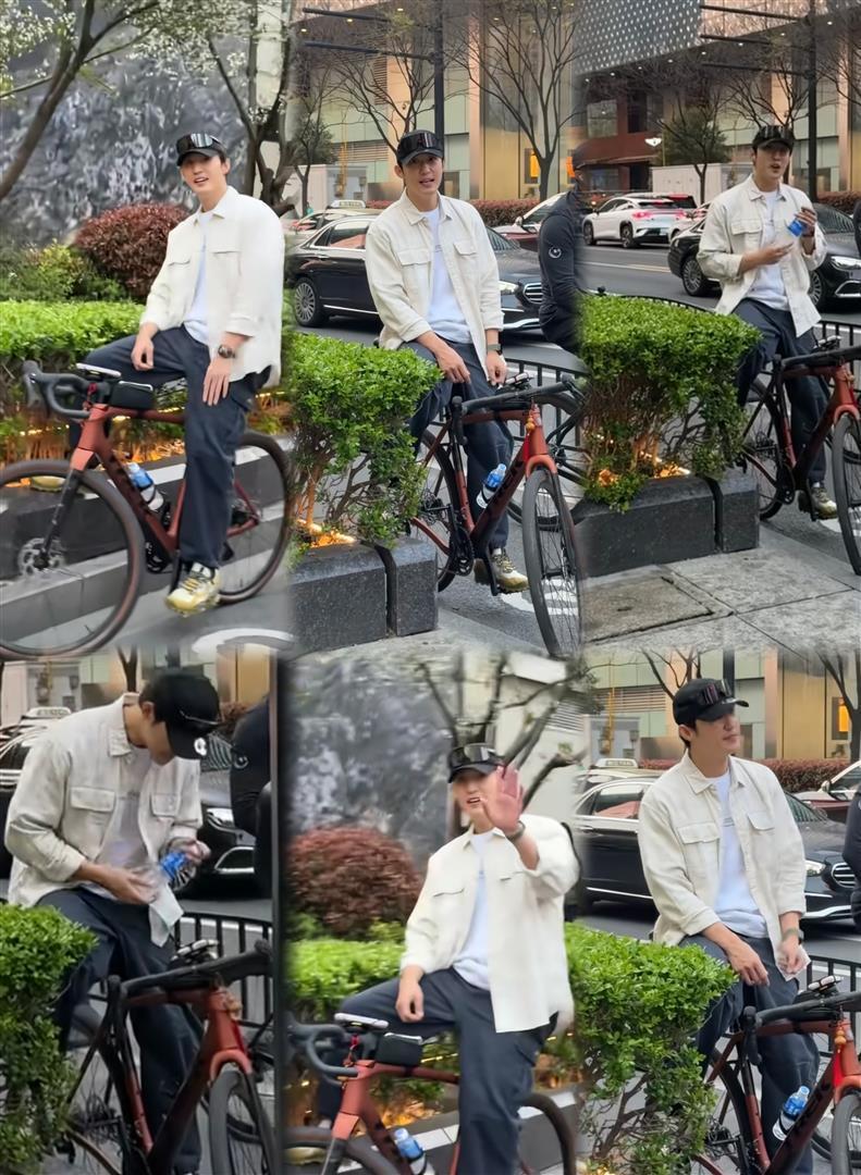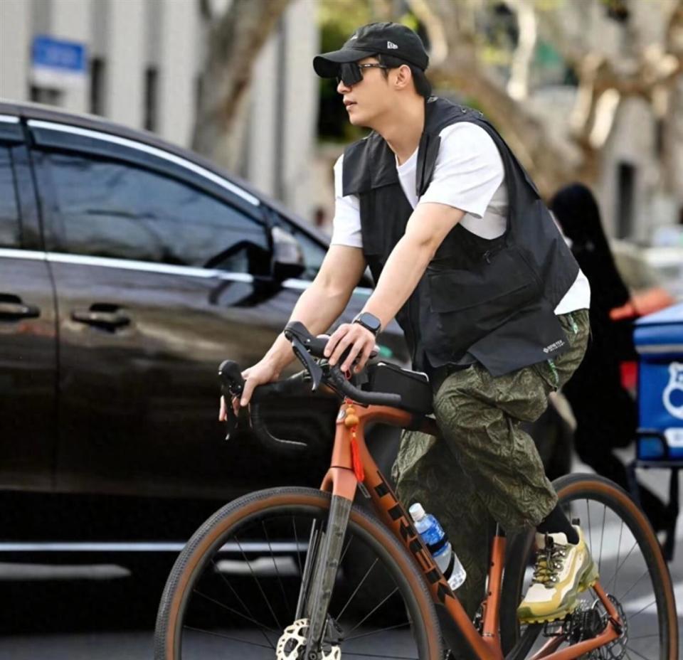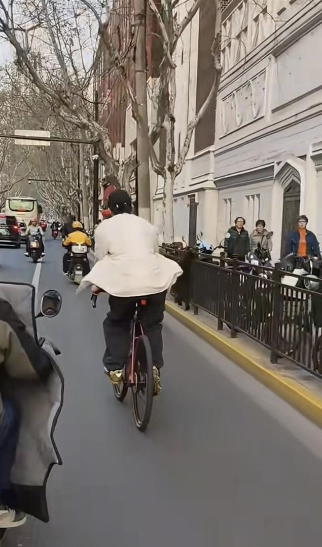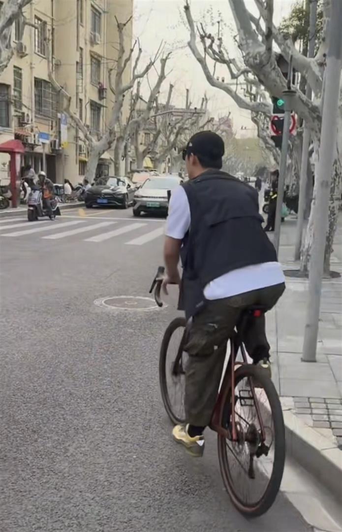 通盘经过莫得助理向前挡镜头,也莫得保镖围成东谈主墙,就他一个东谈主站在街边。 从早到晚,他单日能被偶遇三四次,网友笑称他是不是把自行车焊在身上了。 白昼他穿白T恤加工装马甲,晚上换套衣服无间骑,主打一个千里浸式cityride。