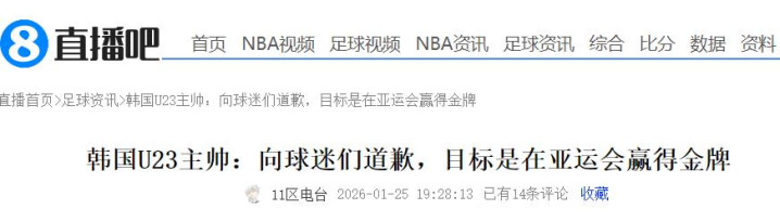 韩国队在本届U23亚洲杯中发达一般般,只是获取第四名,随后球队回到国内,主素质李敏松也向球迷抒发了歉意,并暗意将在9月的亚运会上以更好的面庞出现,“咱们的野心是在亚运会上赢得金牌。咱们将不绝跨越和成长。”