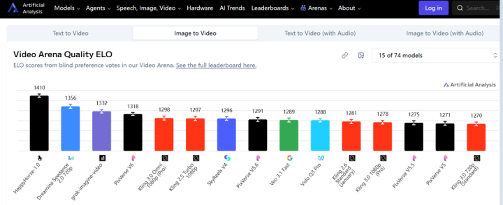 Al测评平台图生视频(不纳入音频)榜单平台网站截图