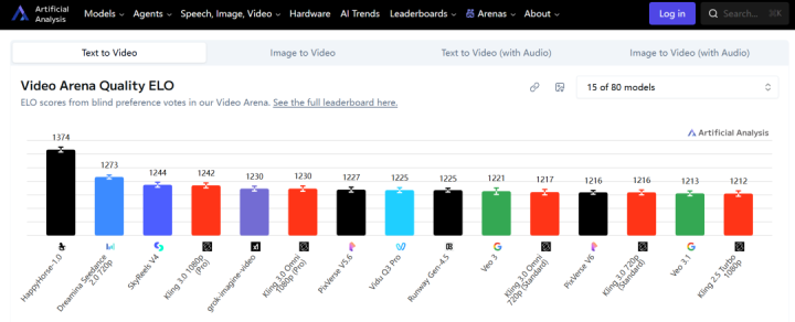 Al测评平台文生视频模子(不纳入音频)榜单平台网站截图